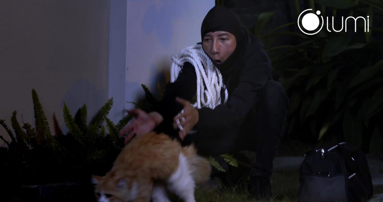 Rình rập chờ đợi toàn bộ đèn trong nhà Xuân Bắc đã tắt, tên trộm láu cá đã leo qua hàng rào và thả một chú mèo vào trong sân nhằm “thăm dò” các thiết bị an ninh.