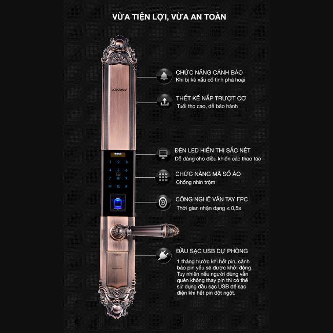 Với cảm biến vân tay FPC được trang bị trong đầu đọc vân tay của khóa thì các dấu vân tay giả mạo sẽ được phát hiện ngay. Khi không cảm nhận đúng nhiệt độ và áp suất của dấu vân có lưu trong khóa thì việc mở được cửa là hoàn toàn không thể.